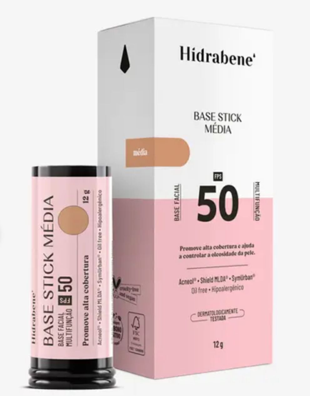 A Hidrabene Base Stick é um produto vegano e cruelty-free, desenvolvido para oferecer alta cobertura e cuidados essenciais para a pele. Com uma fórmula inovadora, proporciona disfarce das imperfeições e controle da oleosidade, garantindo um acabamento matte e aveludado ao longo do dia.