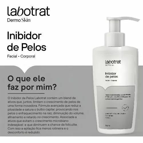 O Sérum Inibidor de Pelos Labotrat Dermo Skin é um produto inovador que pode ser usado em todo o corpo e rosto, reduzindo a pilosidade e combatendo a foliculite, sendo bioativo com uma potente ação antiandrogênica. Sua fórmula é enriquecida com Extrato de Erva Salgueiro e Abóbora, Saw Palmetto e Alantoína, que juntos limitam o crescimento de pelos e reduzem a pilosidade de forma eficaz. Este produto possui uma fórmula avançada que reduz a pilosidade, satura o bulbo capilar, provocando nos pelos o enfraquecimento na raiz, diminuição do volume, afinamento e retardo no crescimento. Com o seu uso, a epilação fica menos rotineira e o desconforto é reduzido. Além disso, ele contém ativos que evitam o crescimento microbiano indesejável e diminuem a chance de foliculite.