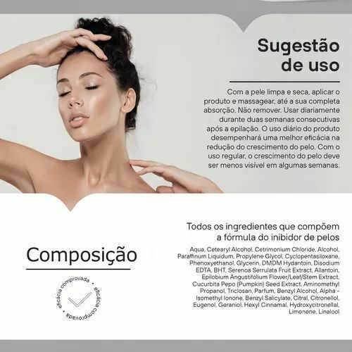 O uso regular e consistente do produto é a chave para resultados duradouros. Com o tempo, você notará que o crescimento dos pelos será menos visível e a necessidade de epilação será reduzida.
