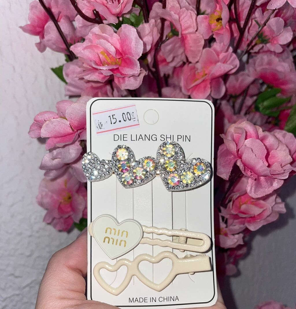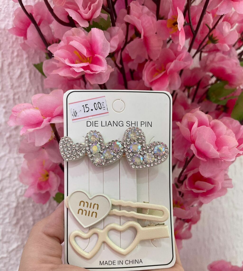 Kit contendo 3 presilhas em formato de coração, super estiloso pra arrasar nos looks.