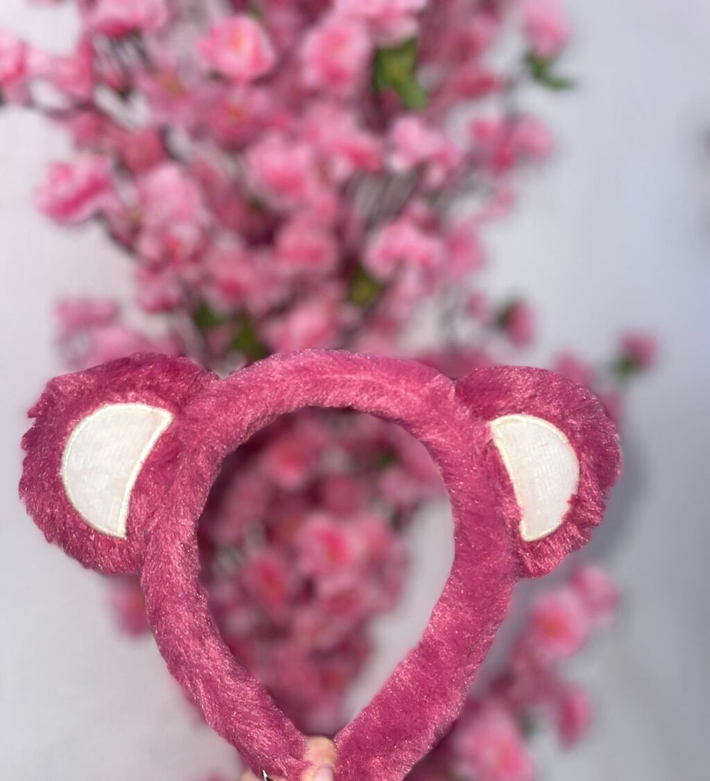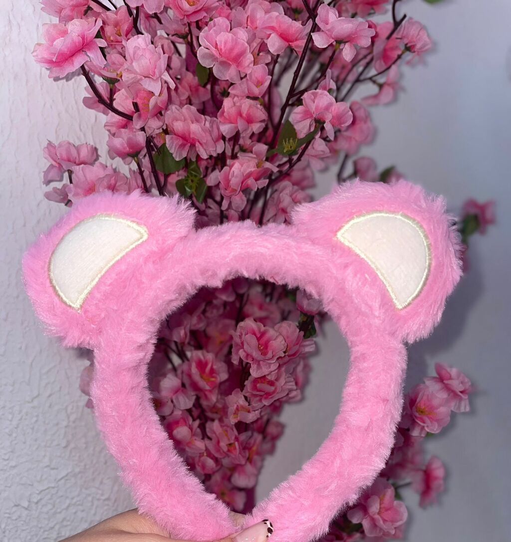 Tiara de pelúcia orelhas de urso para maquiagem ou skincare.